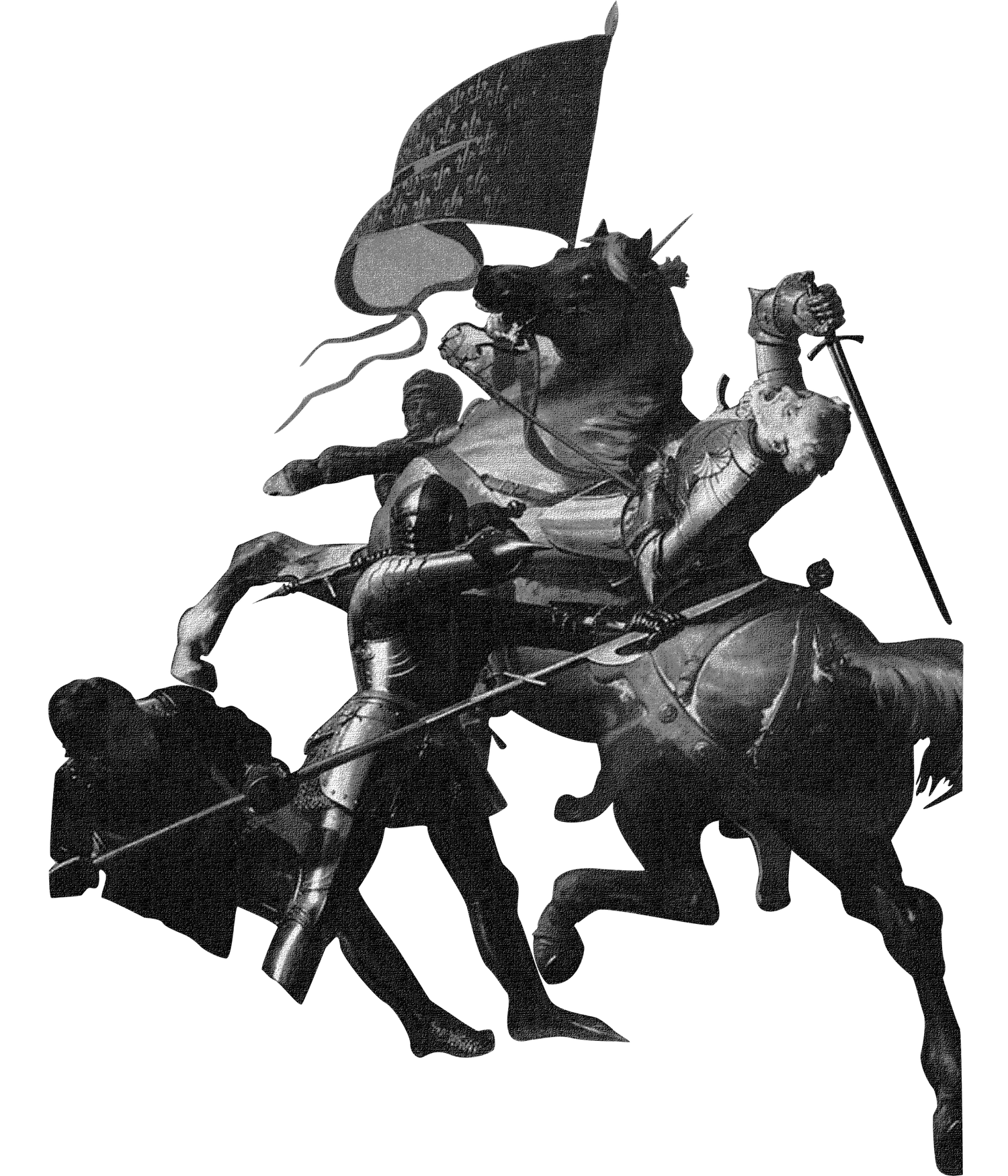 - Inspiré du tableau de Charles-Philippe Larivière: Bataille de Castillon, 17 juillet 1453, illustrant des soldats français en armure se précipitant sur les troupes anglaises en déroute. La fumée, les flammes et le ciel sombre démontre le chao de cette bataille qui fut décisive.