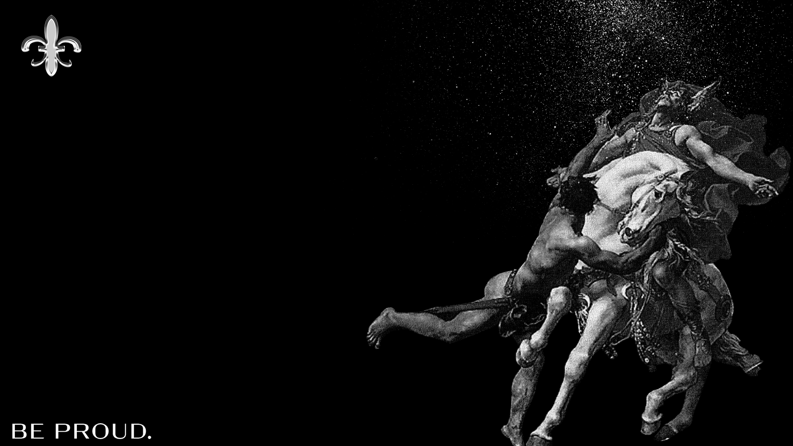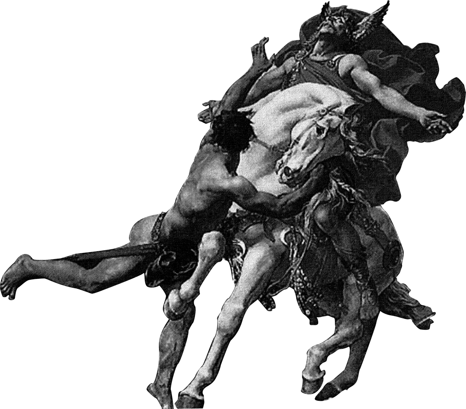 - Inspiré du tableau de Joseph Blanc (Français, 1846-1904) :La bataille de Tolbiac, mettant en scène Clovis au centre du champ de bataille, levant les bras vers le ciel dans un moment dramatique de supplication.